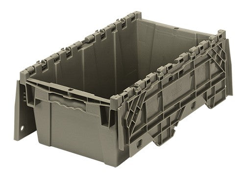 The QDC2012-7 attached-top container is ideal for storage, distribution and order-picking applications. The unit is a complete package with a double-hinged lid and ideal stacking capabilities. It has ergonomically designed handles enable easy lifting. When not in use, the container may be nested on top of another container.