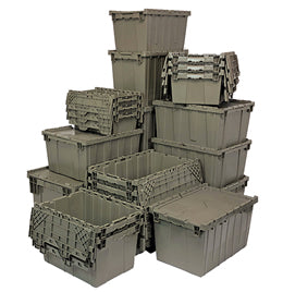 Heavy-duty, strong and reliable totes are reusable and ideal for storage, distribution and order picking. Tops are permanently attached with hinges that interlock for stacking strength and security. Stack for maximized storage and nest when empty. Textured, non-slip bottom ensures smooth conveying. Ergonomically designed handles allow for easy lifting. Recessed lids ensure maximum load stability. Padlock eye provides security option allowing lids to be fastened and/or locked. Molded from high density, FDA approved polyethylene. Lids close securely to protect parts from dust or damage.